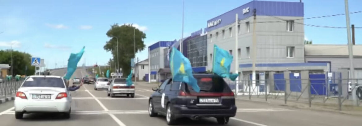 В областном центре по улицам Петропавловска с флагами проехали автомобили, передаёт корреспондент Qyzyljarnews.kz.